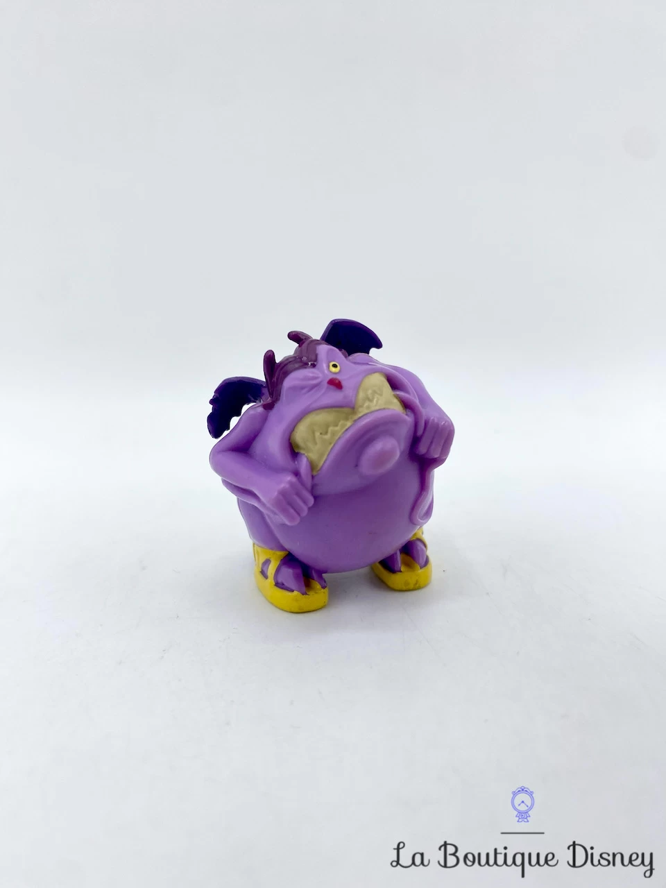 Figurine en plastique de Peine, le petit monstre ami de Panique qui assiste Hadès le dieu des Enfers dans ses machinations. Ce démon est violet mauve, un peu gros, possède deux cornes violettes et porte des chaussures jaunes.