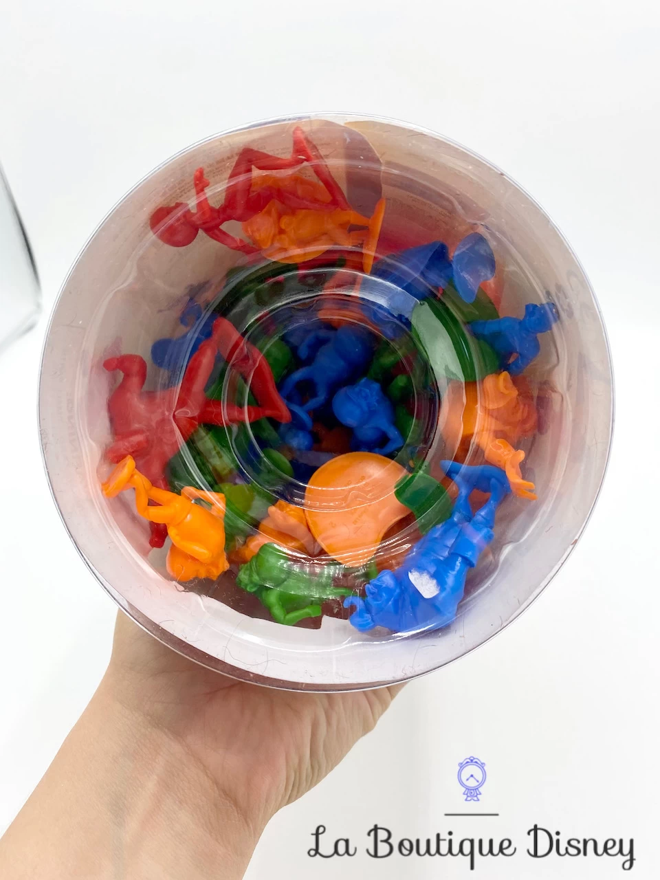 Coffret en plastique contenant une multitude de petites figurines en plastique orange, bleu, vert ou rouge. Comprend : 2 Mme Indestructible, 2 Mr Indestructible, 2 Flèche, 2 Violette, 6 Jack-Jack, 2 Frozone, 55 méchants plus un parachute Mme Indestructible spécial avec Jack Jack ! Jouet idéal pour les fans du film.