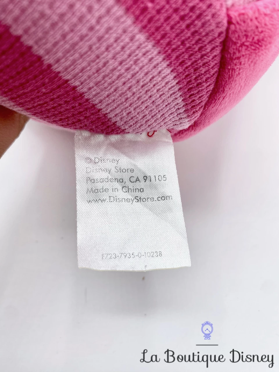 Peluche très douce du petit chaton blanc, Marie. Elle a un joli pelage. Ses yeux bleus sont brodés. Elle porte un pyjama rose à rayures avec un petit noeud rose sur la tête. Elle a quatre chaussons verts dont un avec l’écusson Disney Store Exclusive Authentic Original. Marie est prête à attendre le Père Noël !