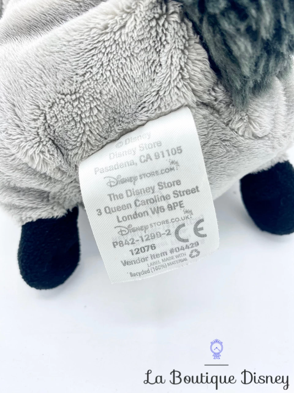 Peluche de Meeko, le célèbre raton laveur gris ami de Pocahontas. Il se tient assis et arbore ses quatres petites pattes noires et une longue queue rayée noire et grise. Visage brodé. Sa fourrure et son ventre tout doux donneront vraiment envie de le caliner !